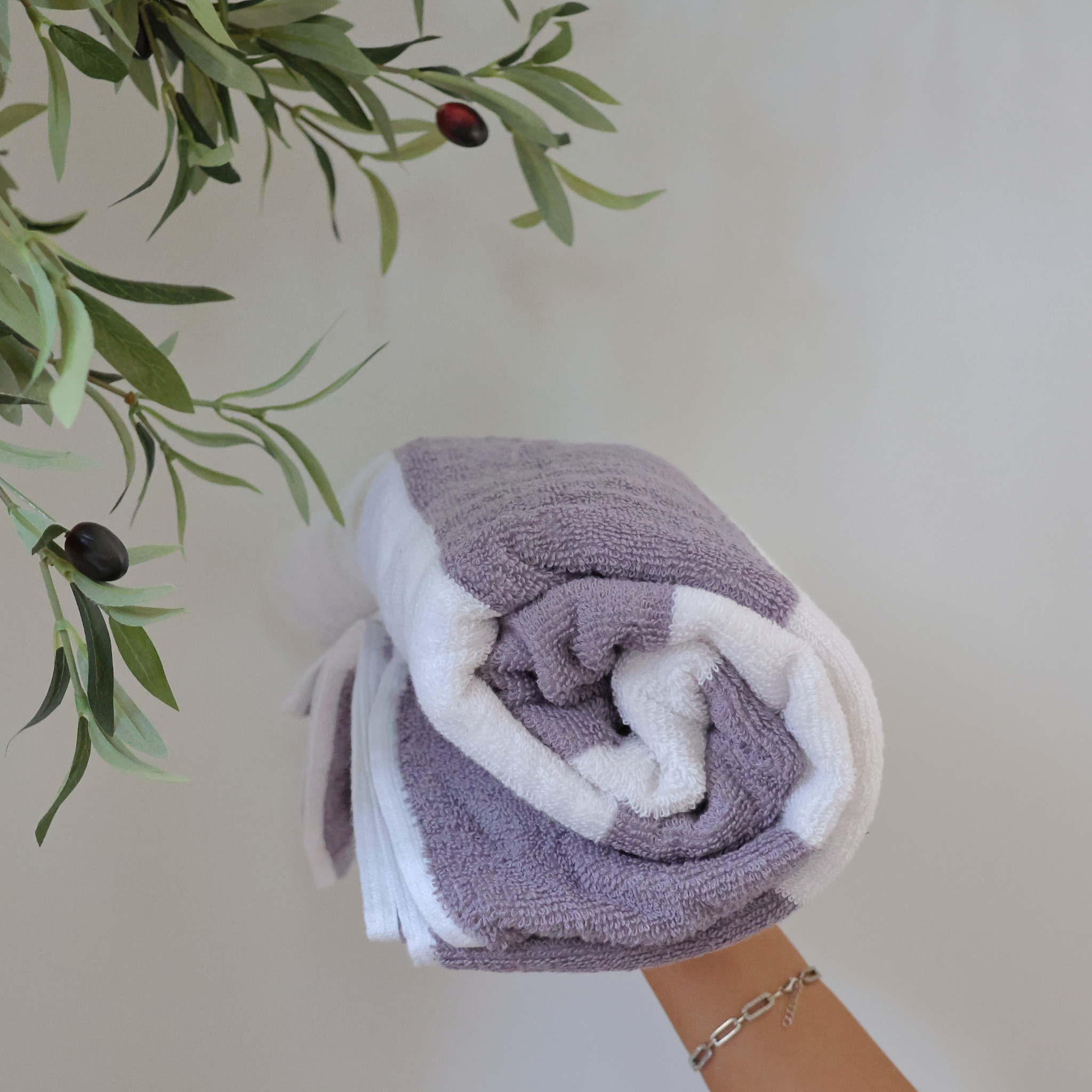 Toalla rayada gris plomo